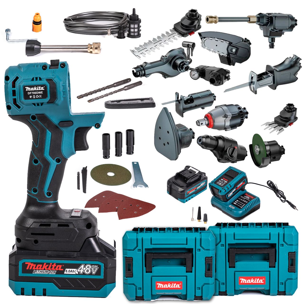 Акумуляторний багатофункціональний набір Makita 13в1 DF700DWE (48V, 6Ah) Мультитул Макіта з 2 кейсами