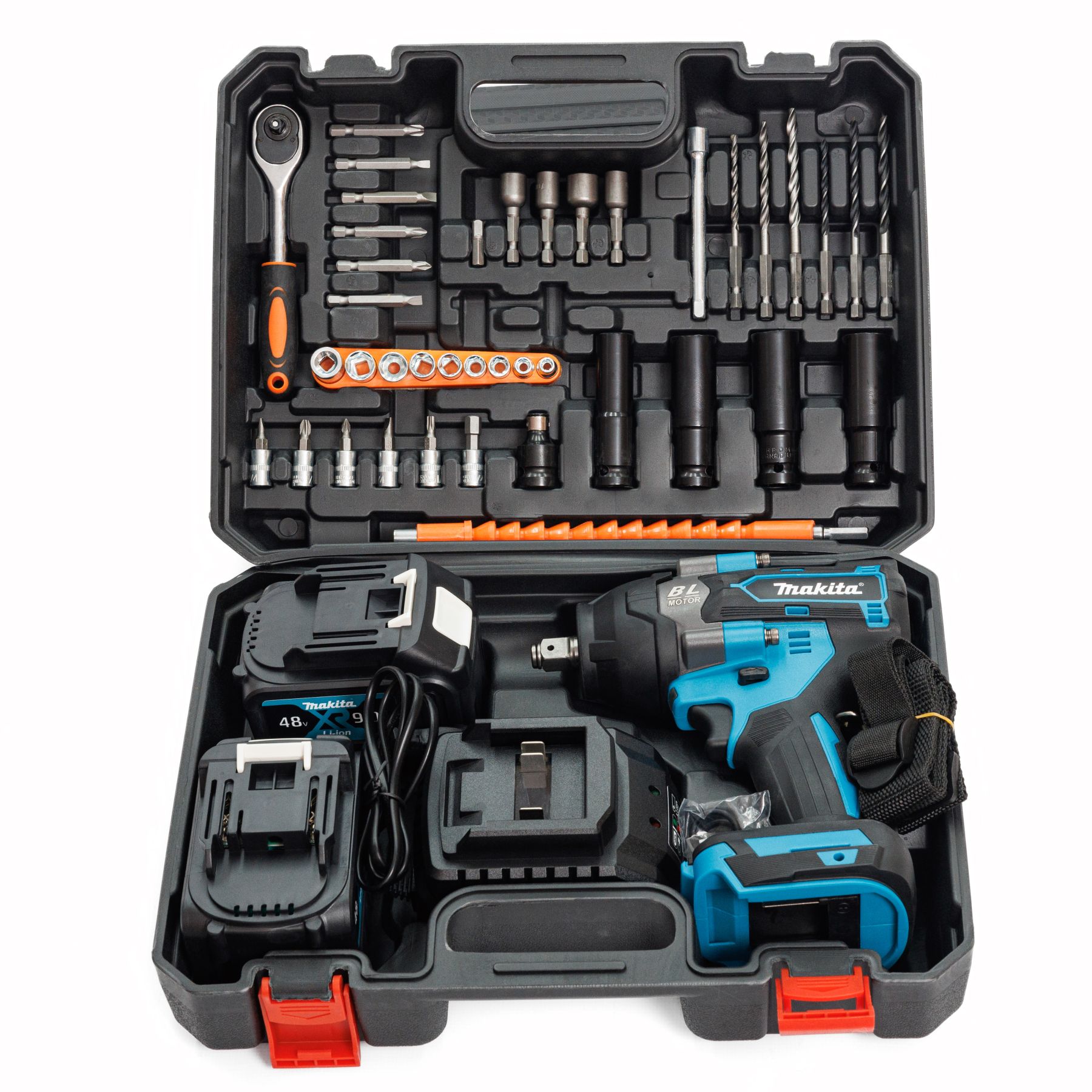 Безщітковий двигун забезпечує довгий термін експлуатації, мінімальне нагрівання й економну витрату енергії, а потужний акумулятор 48V 9Ah дає змогу працювати тривалий час без заряджання. Навіть під час інтенсивних навантажень інструмент зберігає стабільну продуктивність, що робить його незамінним помічником на будівельних майданчиках, в автомайстернях і в побутовому ремонті. У комплекті передбачені свердла, біти, головки та гнучкий вал, що розширюють можливості гайковерта та дають змогу використовувати його для безлічі завдань.