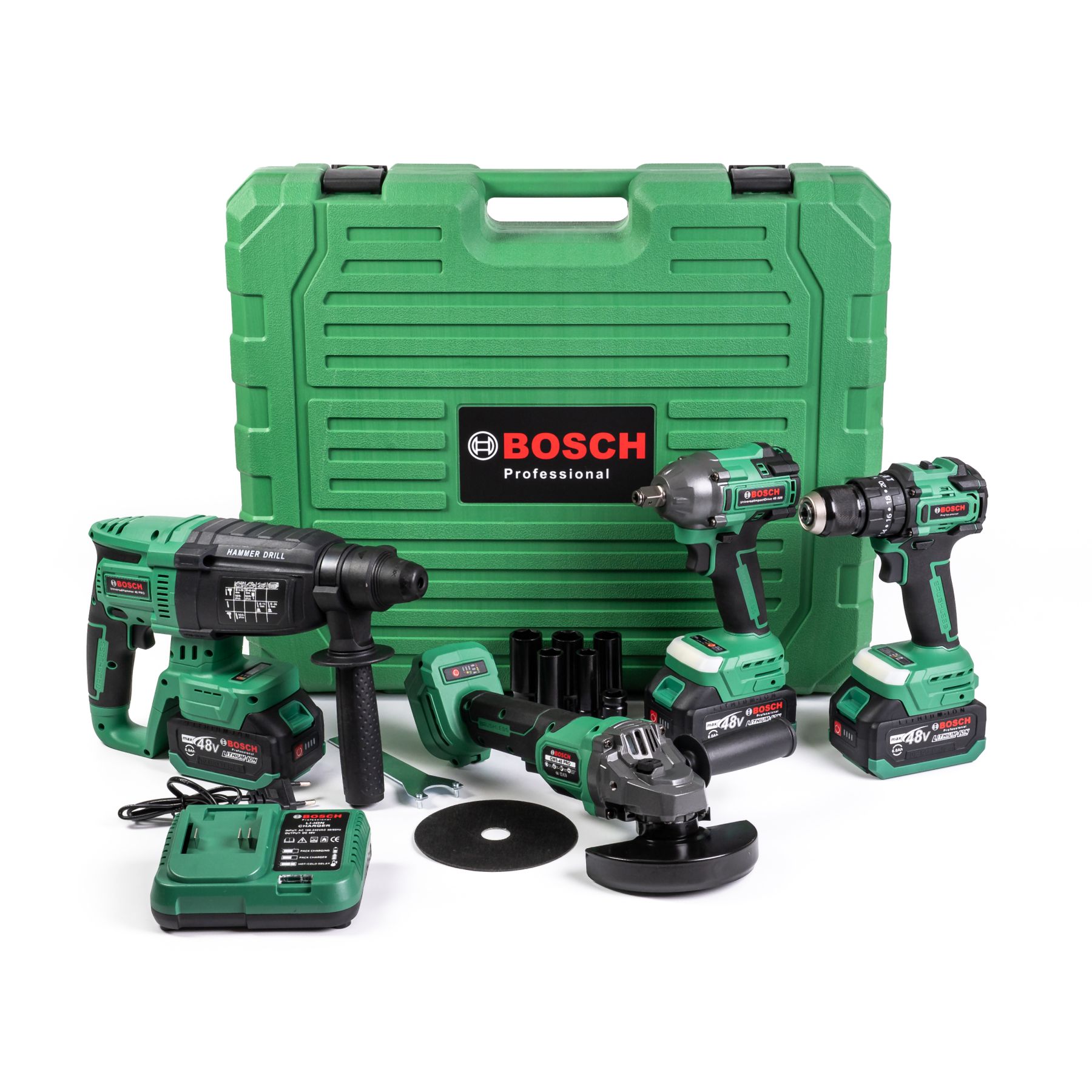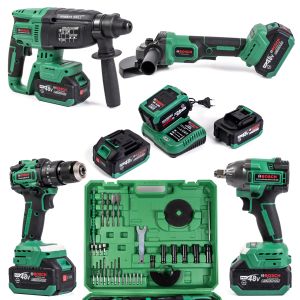 Безщітковий акумуляторний набір Bosch 4в1 (Гайковерт + Шуруповерт + Перфоратор + УШМ) Набір Бош з 3 АКБ по 48V та насадки