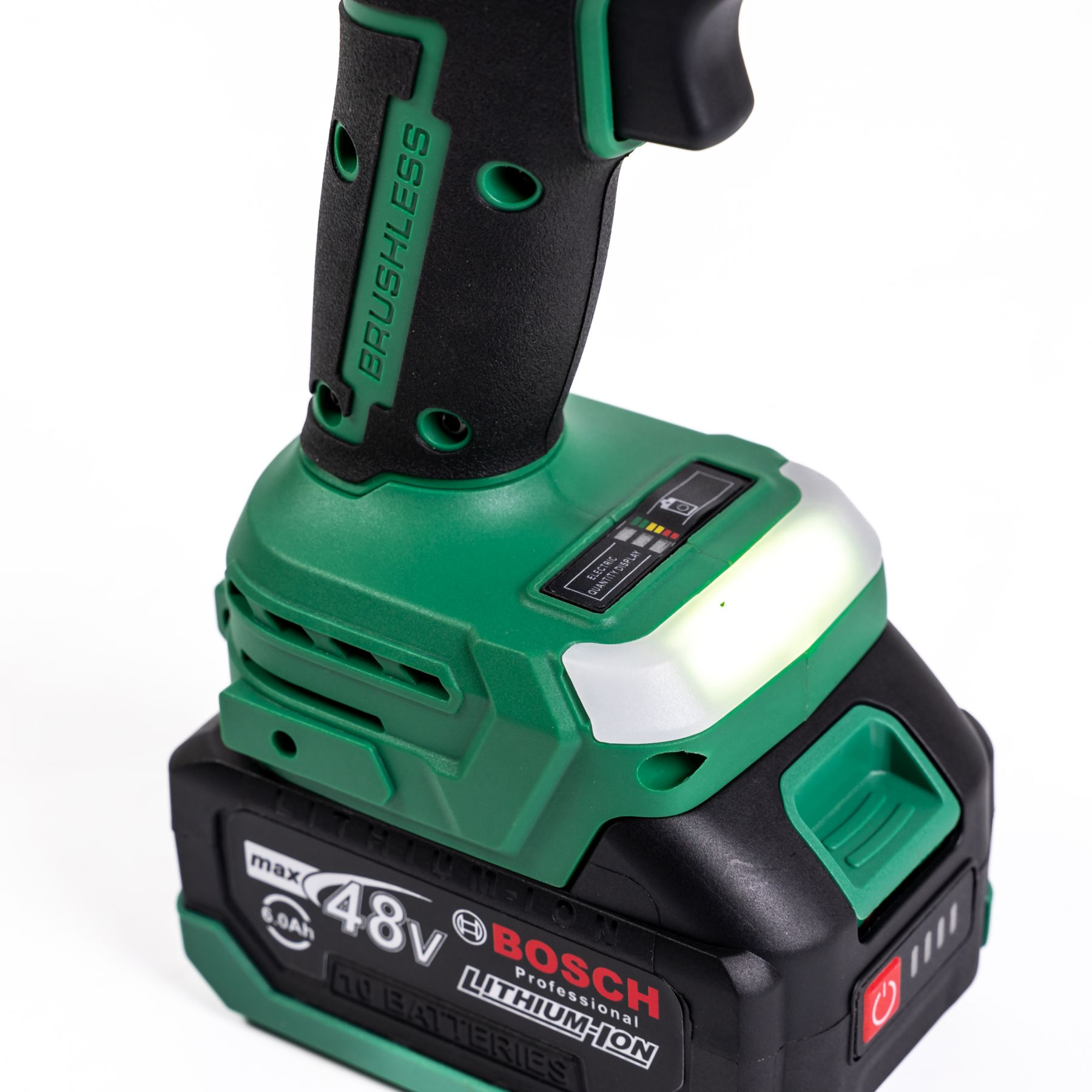 Цифрова панель керування - розміщена на верхній частині акумуляторного відсіку. Слугує для оперативного контролю рівня заряду батареї, запобігаючи раптовому зупиненню під час буріння.