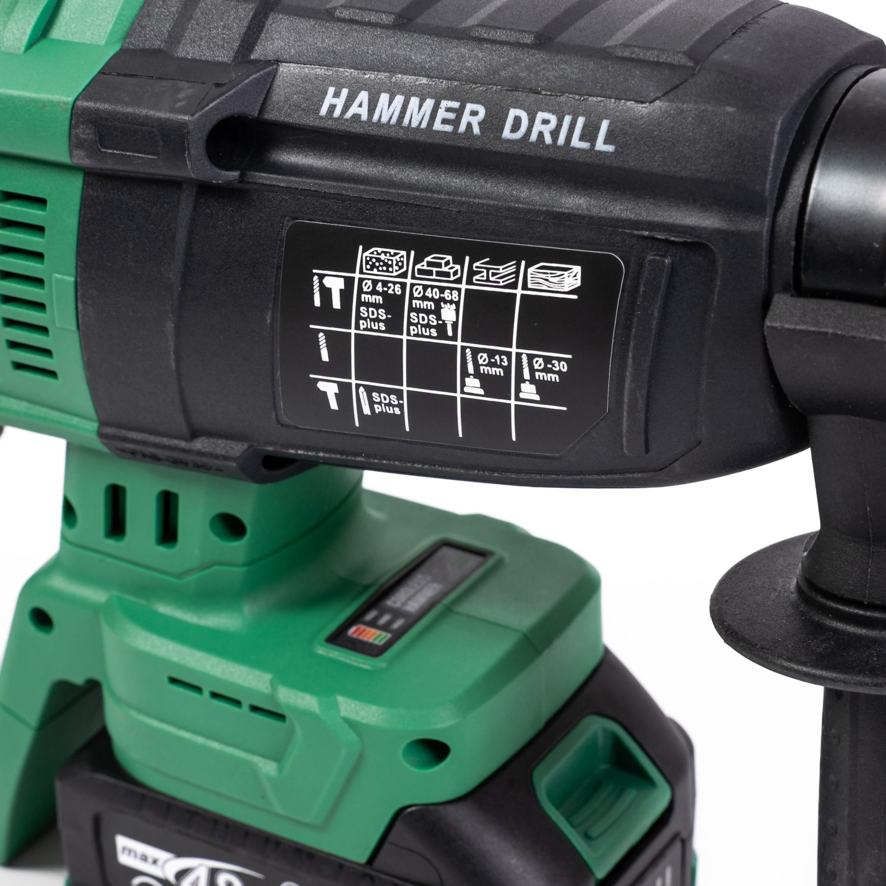- Макс. діаметр отвору ударним свердлом у бетоні: 26 мм