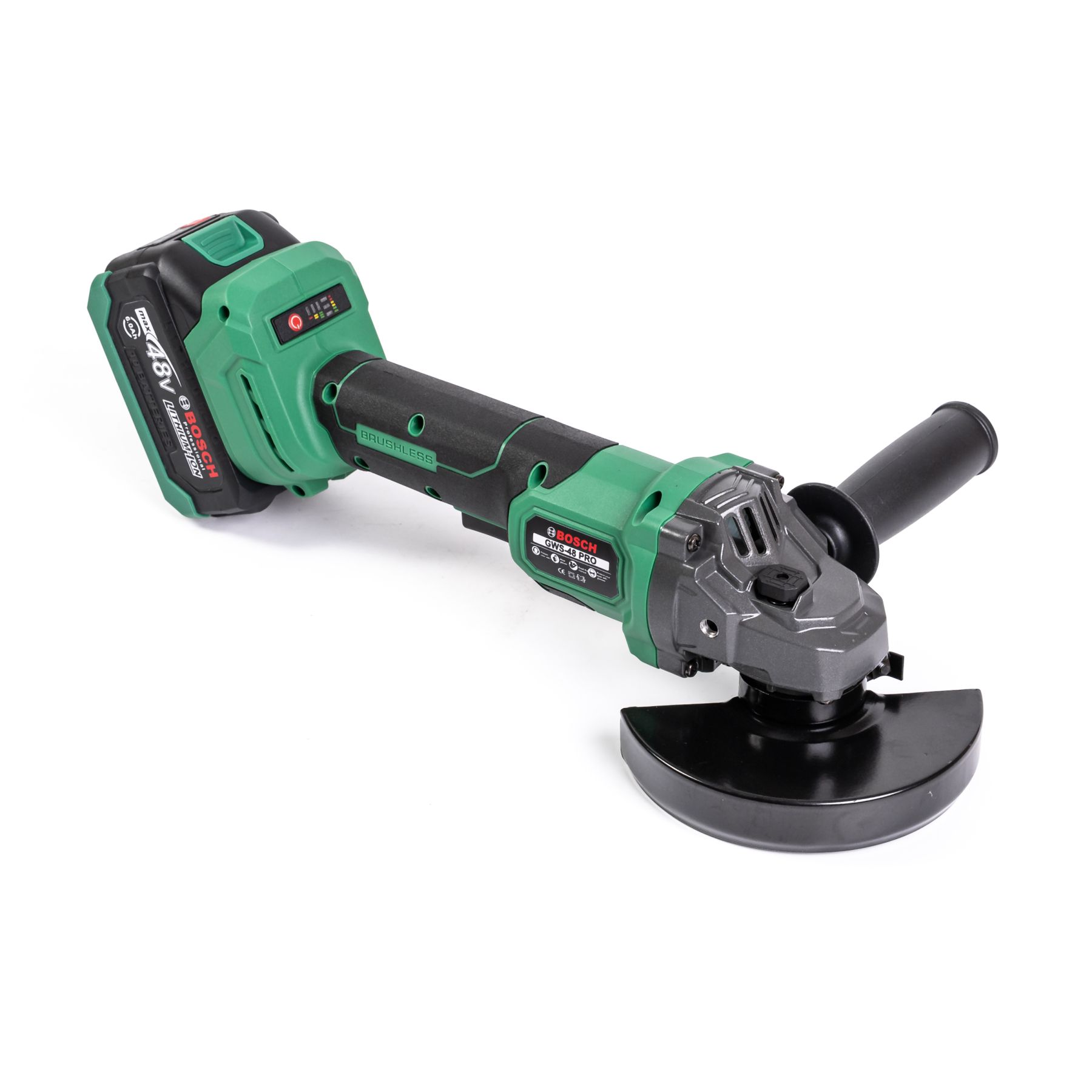Акумуляторна болгарка Bosch GWS-48 PRO под диски 125 мм — ефективний інструмент для різання та шліфування. Безщітковий двигун підтримує швидкість до 11 000 об/хв навіть під навантаженням.