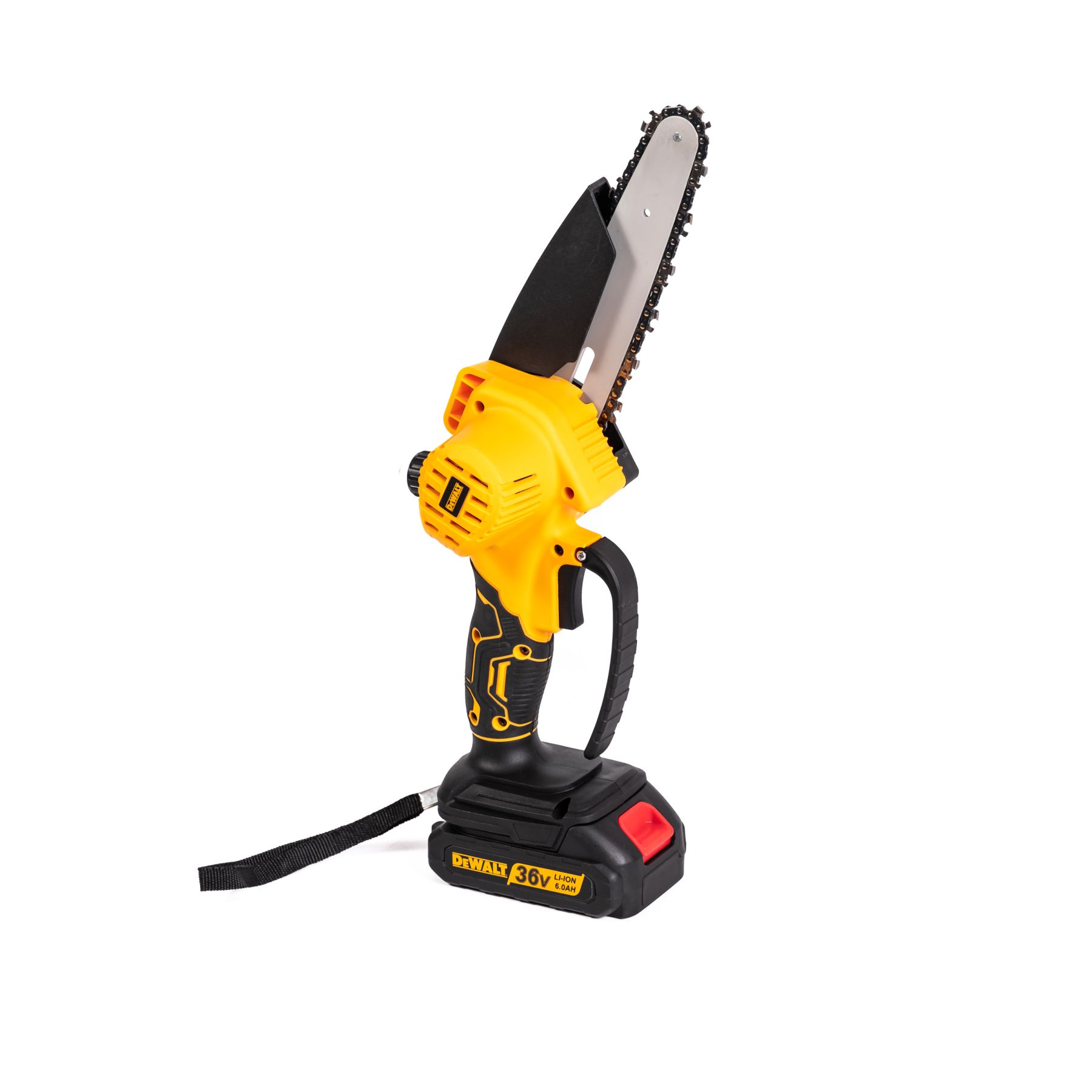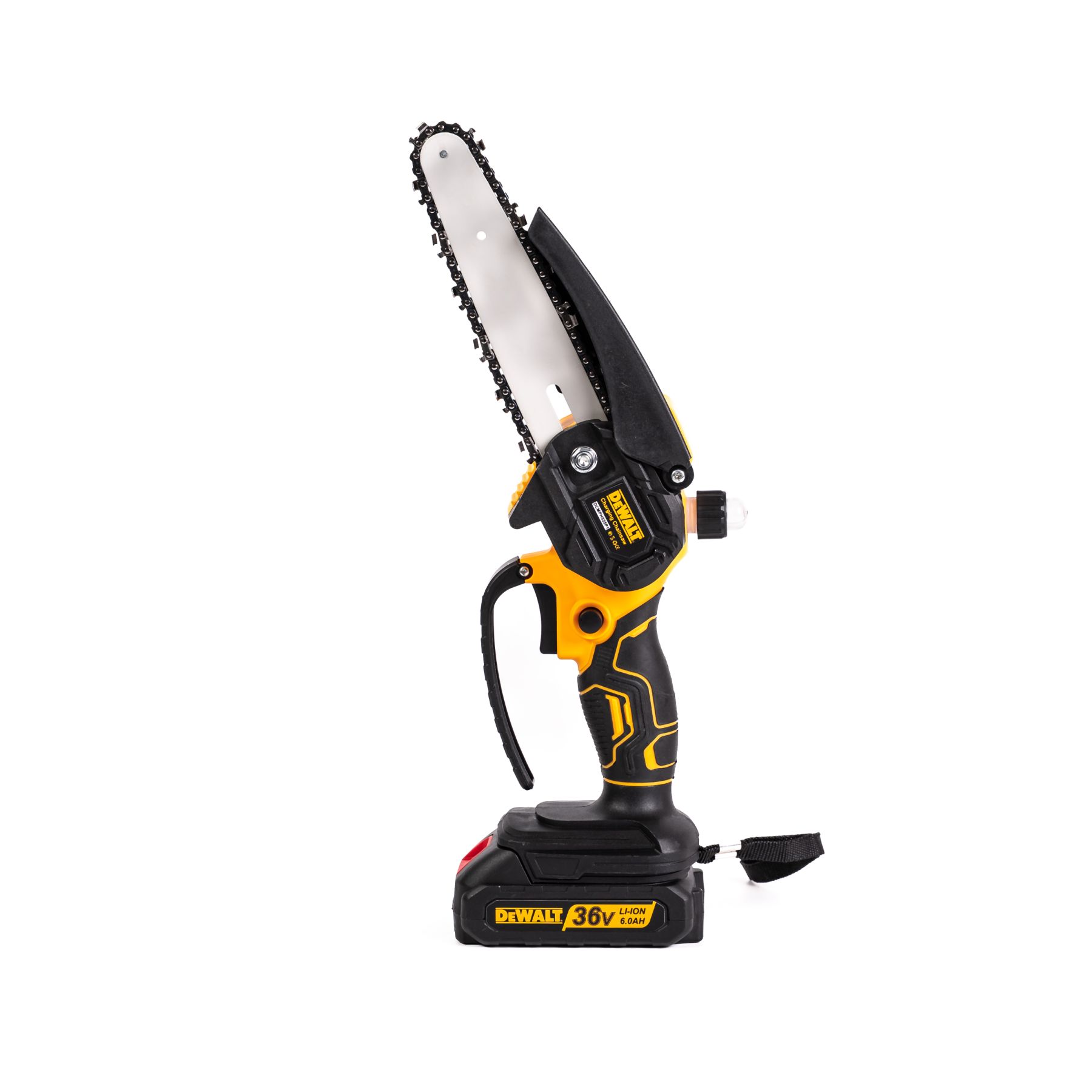 - Мини-пила DeWalt DCMPH525P1 обладнана шиною завдовжки 20 см і швидкістю ланцюга 8 м/сек.