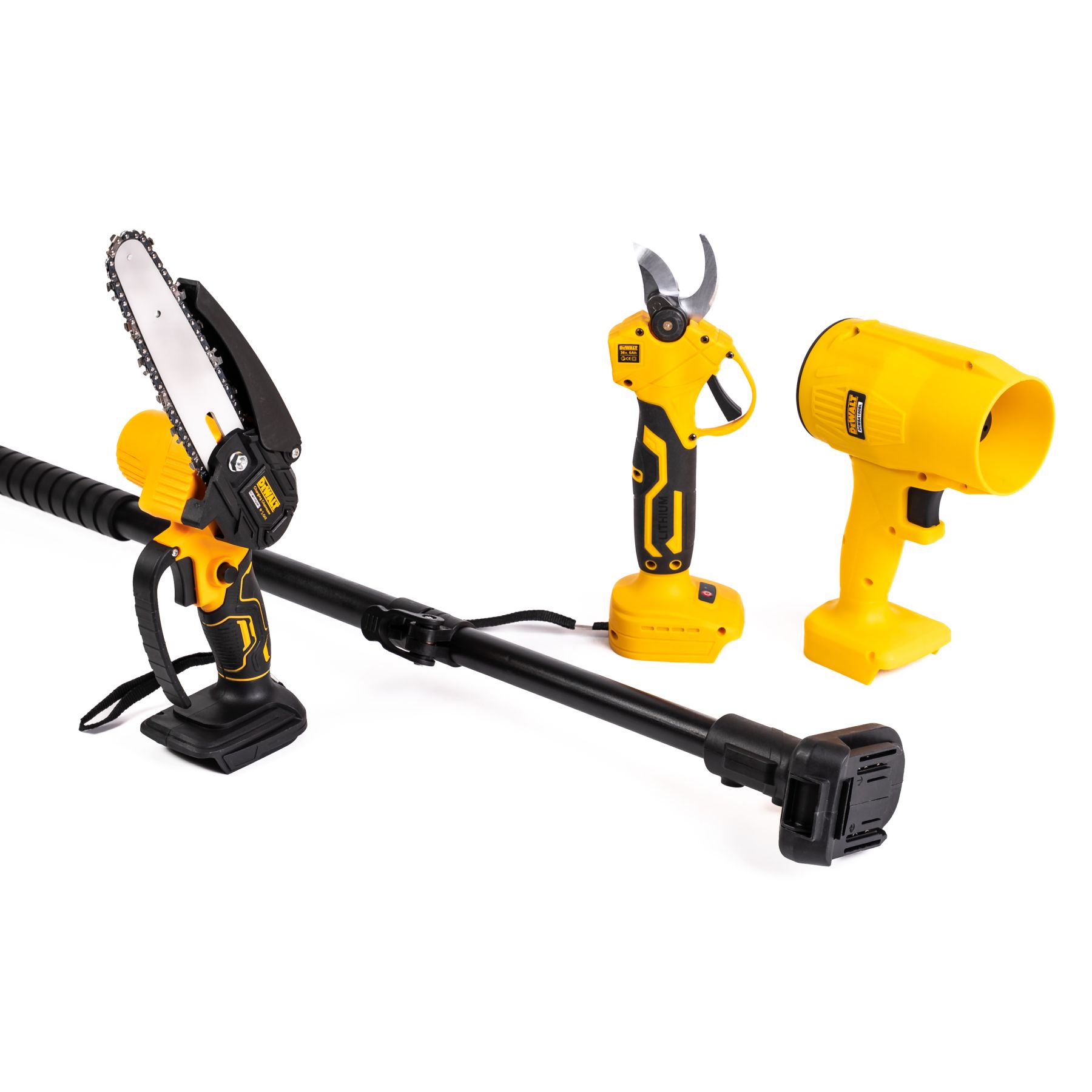 Набір DeWalt 5в1 (Секатор, Пила 20см, Повітродувка, Тример, Висоторіз + штанга 2.5м) Набір садовий Деволт 36V