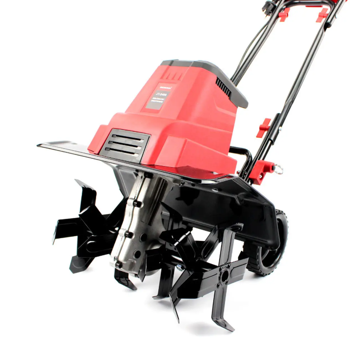 Электрический культиватор оснащён шестью прочными фрезами из высококачественной закалённой стали, которые обеспечивают уверенное и глубокое рыхление почвы даже на тяжёлых или целинных участках. Каждая фреза спроектирована таким образом, чтобы выдерживать высокие нагрузки и длительное воздействие влаги и твёрдых включений в грунте, не теряя своей остроты и прочности.
