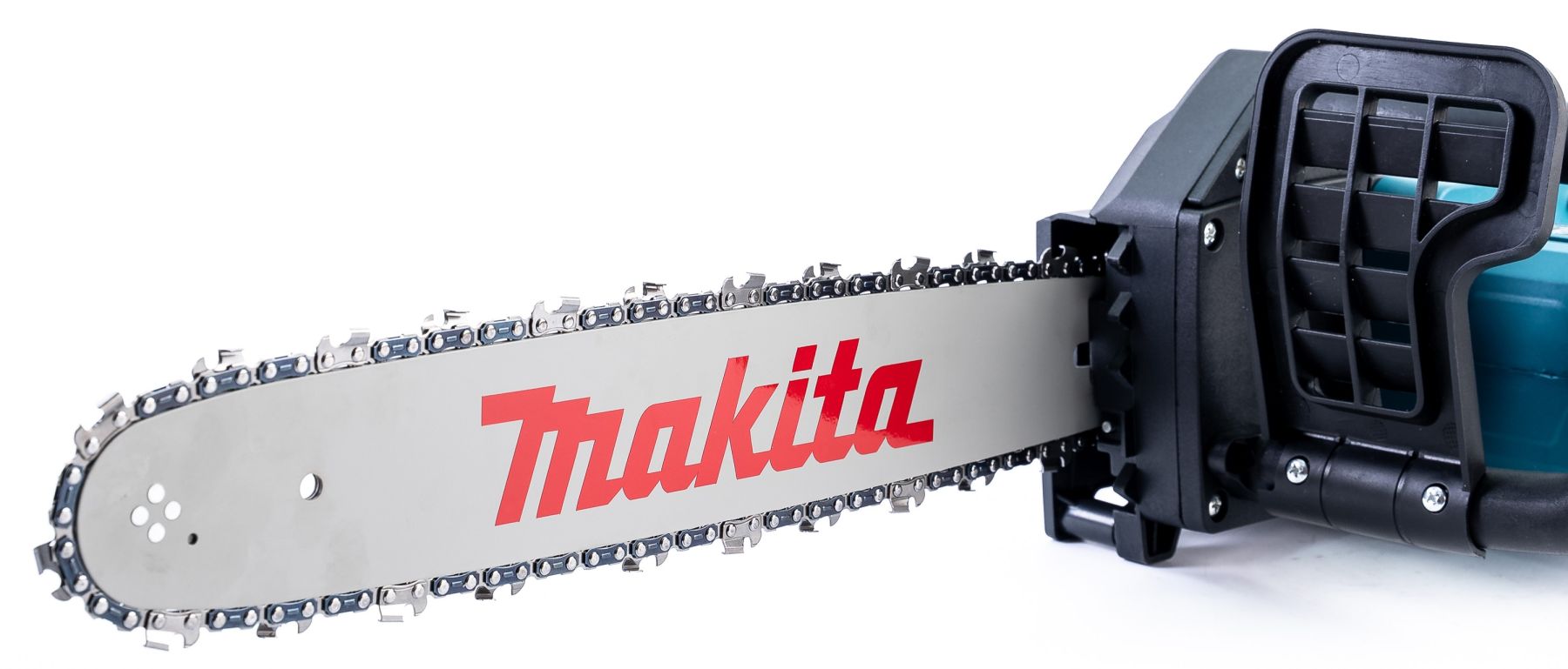 - Надійна система безпеки. Makita DUC360Z обладнана системою миттєвого гальмування ланцюга Quick Stop, яка миттєво зупиняє рух під час заклинювання або різкого зміщення, знижуючи ризик зворотного удару та підвищуючи безпеку роботи. Додатковий захист забезпечує стопор на наконечнику шини, що перешкоджає раптовим ривкам.